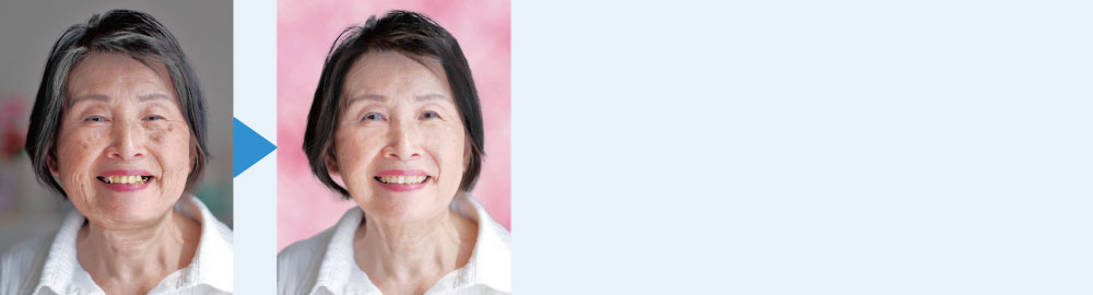 スナップ写真の背景に写ってしまった不要物を消したい スナップ写真から遺影を作成してほしい 履歴書や証明書の写真を印象よく綺麗にしたい 年賀状で使用する写真を修正したい 写真スタジオで撮った写真がいまいちなので修正したい 色あせてきた遺影写真を復元したい 記念写真の服装の乱れを修正したい 化粧や美肌加工をしてほしい 二重顎が目立たないようにフェイスラインを整えてほしい 幼少期の写真を二重瞼にしたい 建物外観に写った電線を削除したい 逆光で暗くなった顔を明るくしたい